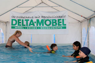 Aufgrund der positiven Resonanz 2025, werden wir auch in diesem Jahr bei DELTA Möbel in Bubesheim unseren mobilen Schwimmkurs durchführen. In unseren Anfängerkursen stehen eine sichere Wassergewöhnung und das spielerische Erlernen der korrekten Technik im Vordergrund. Eine richtige Wassergewöhnung ist die Basis und sorgt für Vertrauen, Sicherheit und Spaß – und ist damit der Schlüssel für nachhaltigen Lernerfolg im Wasser!